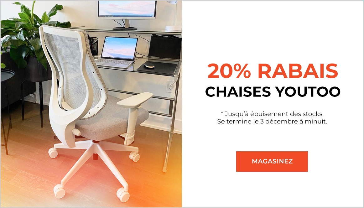 Vous pourrez toujours compter sur l’équipe d’Ugoburo.ca pour vous aider à économiser gros sur vos achats en quantité de mobilier de bureau! Vous cherchez des chaises ergonomiques au design sophistiqué ou de simples chaises empilables en plastique? Communiquez dès maintenant avec l'un de nos spécialistes au 1-855-846-2876 ou cliquez sur le bouton de clavardage pour démarrer une conversation avec l’un d’eux en temps réel!